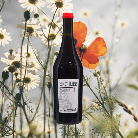 The 2023 Bénédicte & Stéphane Tissot Trousseau Singulier is a fresh, vibrant red from Arbois, Jura. Made using organic and biodynamic methods, with three weeks of carbonic maceration and low sulphur, it shows bright red fruit, floral notes and a lively, energetic finish.
